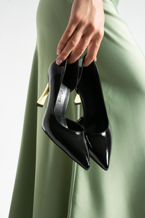 Siyah Vegan Deri Topuklu Ayakkabı | İnce Topuk, Sivri Burun, Günlük Şıklık & Gece Davet Stili