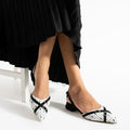 Şıklığın Simgesi Kadın Siyah ve Beyaz Sivri Burunlu Topuklu Babet Ayakkabı