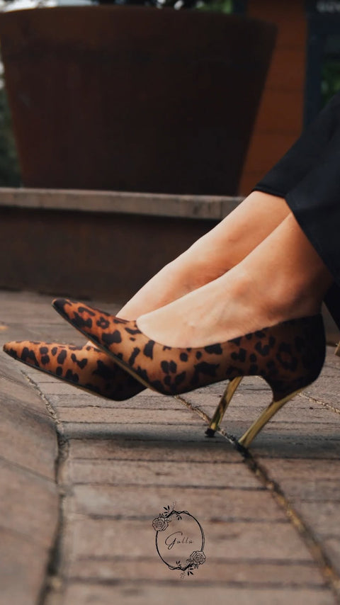 Altın Topuklu Leopar Desenli Saten Kadın Stiletto | Şık, Zarif, Göz Alıcı ve Özgüvenli Model