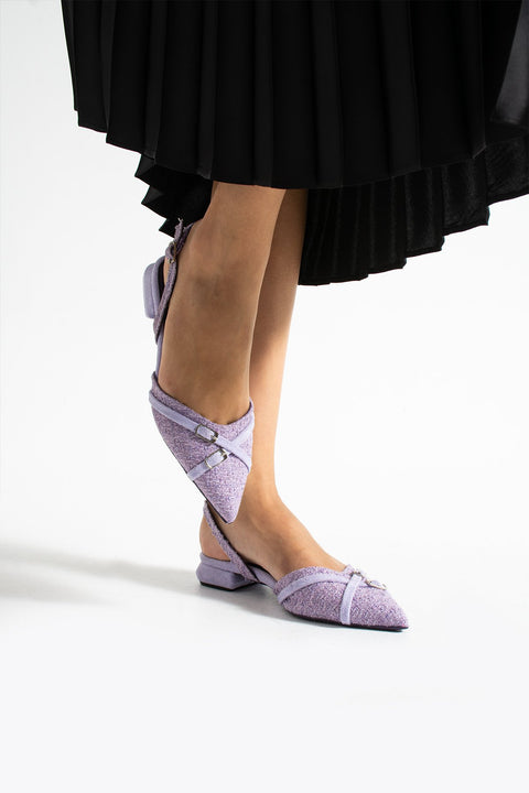 Şıklığın Simgesi Kadın Lila Sivri Burunlu Topuklu Babet Ayakkabı
