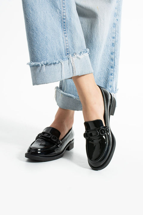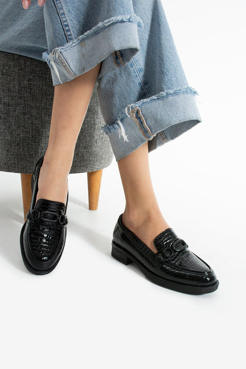 Siyah Tokalı Rugan Loafer – Kadın Makosen Ayakkabı, Günlük Ofis Uyumu, Kalın Tabanlı Yeni Sezon