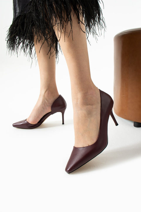 Mat Bordo Vegan Deri Stiletto – 7cm İnce Topuklu Günlük & Ofis Kadın Ayakkabısı