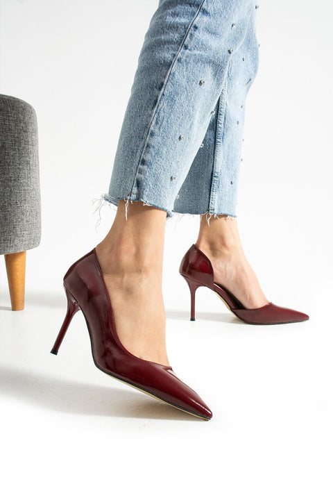 Bordo Mat Vegan Deri Stiletto – 9cm İnce Topuklu Rahat Kalıp Günlük Kadın Ayakkabısı
