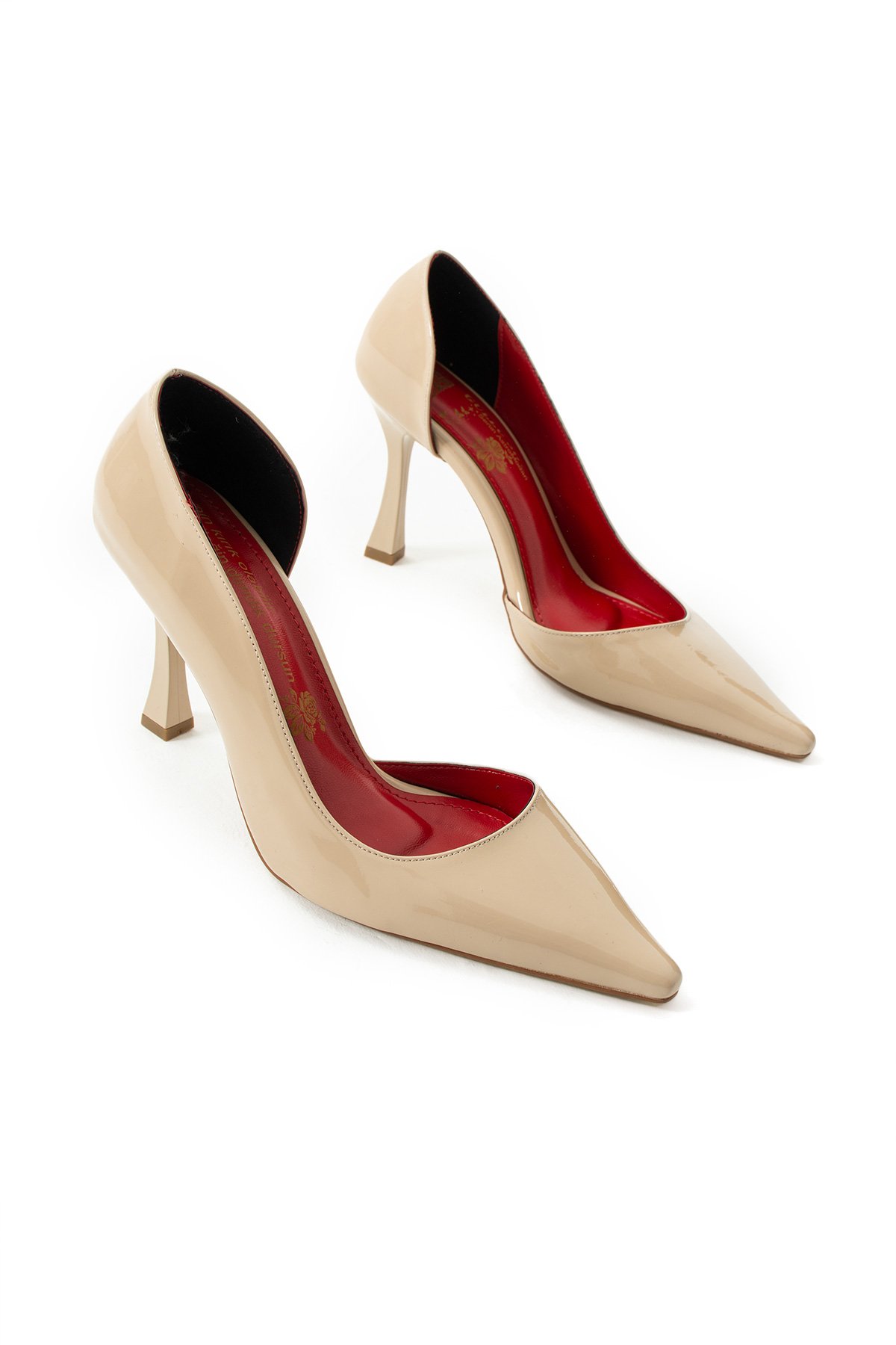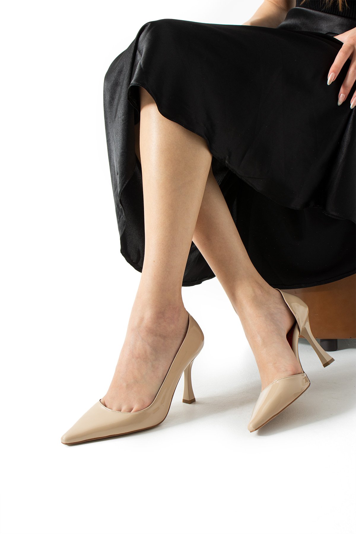 Zarafet ve konforu bir araya getiren bej nude stiletto – %100 vegan suni deri, 8 cm ince topuk ve hafızalı ped konforuyla; şık ofis ve abiye kombinlerinin vazgeçilmezi.