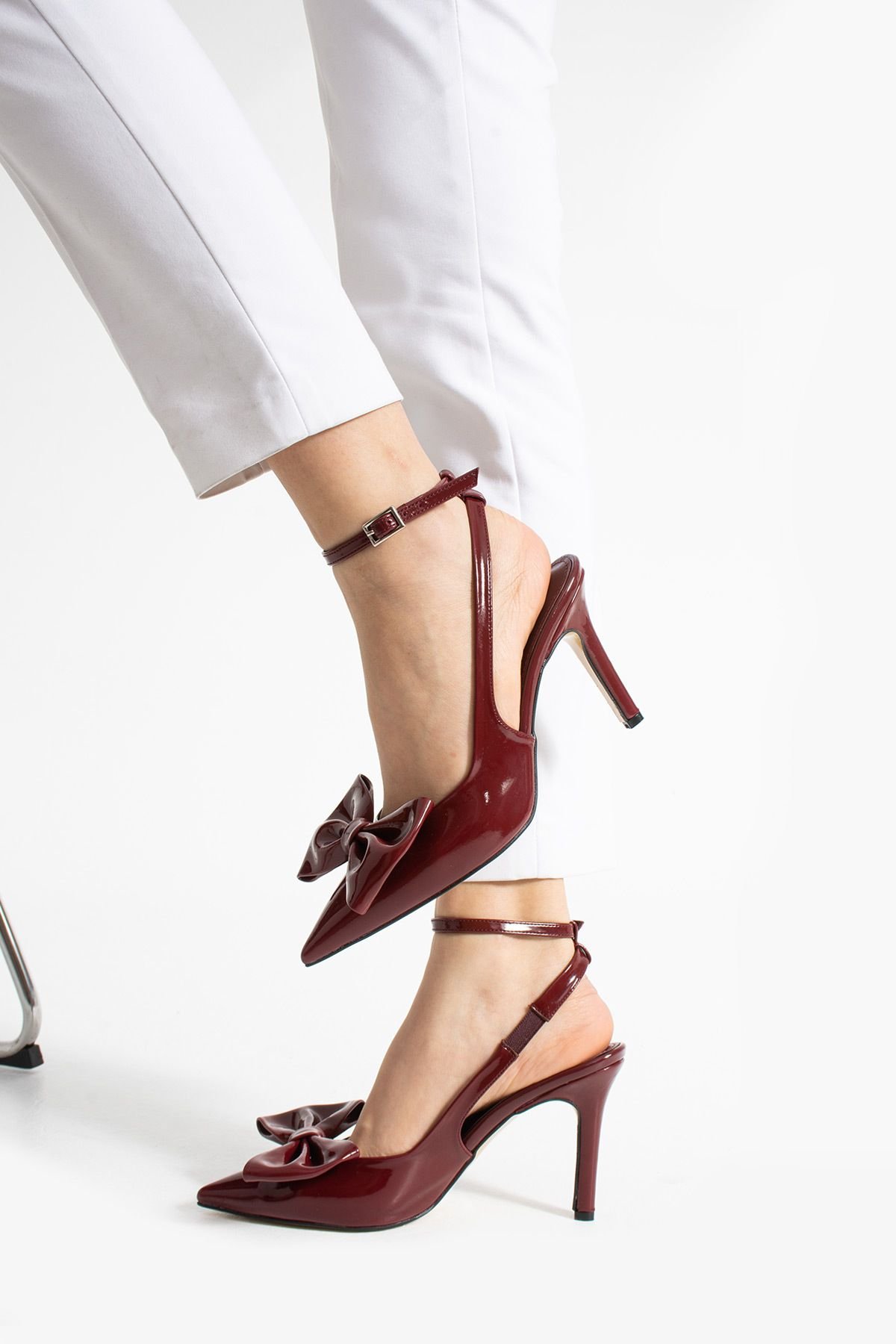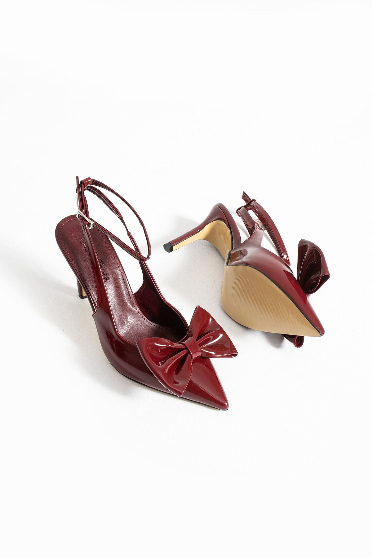 Güllü Shoes’un bordo rugan fiyonklu vegan deri stiletto modeli, asil rengi ve zarif detaylarıyla davetlerden günlük şıklığa kadar her ortamda iddialı bir duruş sergiler.