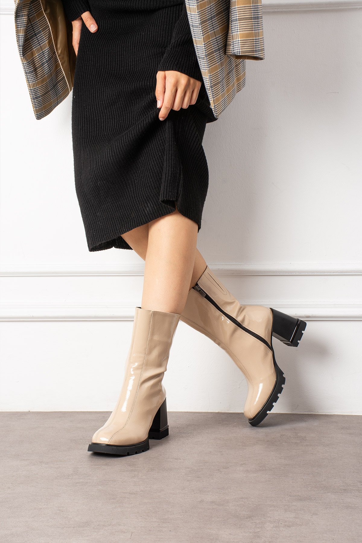 Bu bej kırışık 8 cm topuklu bot, dokulu deri yüzeyi, kalın topuğu ve modern tasarımıyla klasik şıklığı güçlü bir tarzla birleştiriyor. Kaymaz tabanı güvenli adımlar sağlarken, bej rengi farklı kombinlerle uyum sunar. “Bej bot”, “kırışık deri bot”, “8 cm topuklu bot” ve “kadın kışlık bot” arayanlar için özel bir seçimdir.