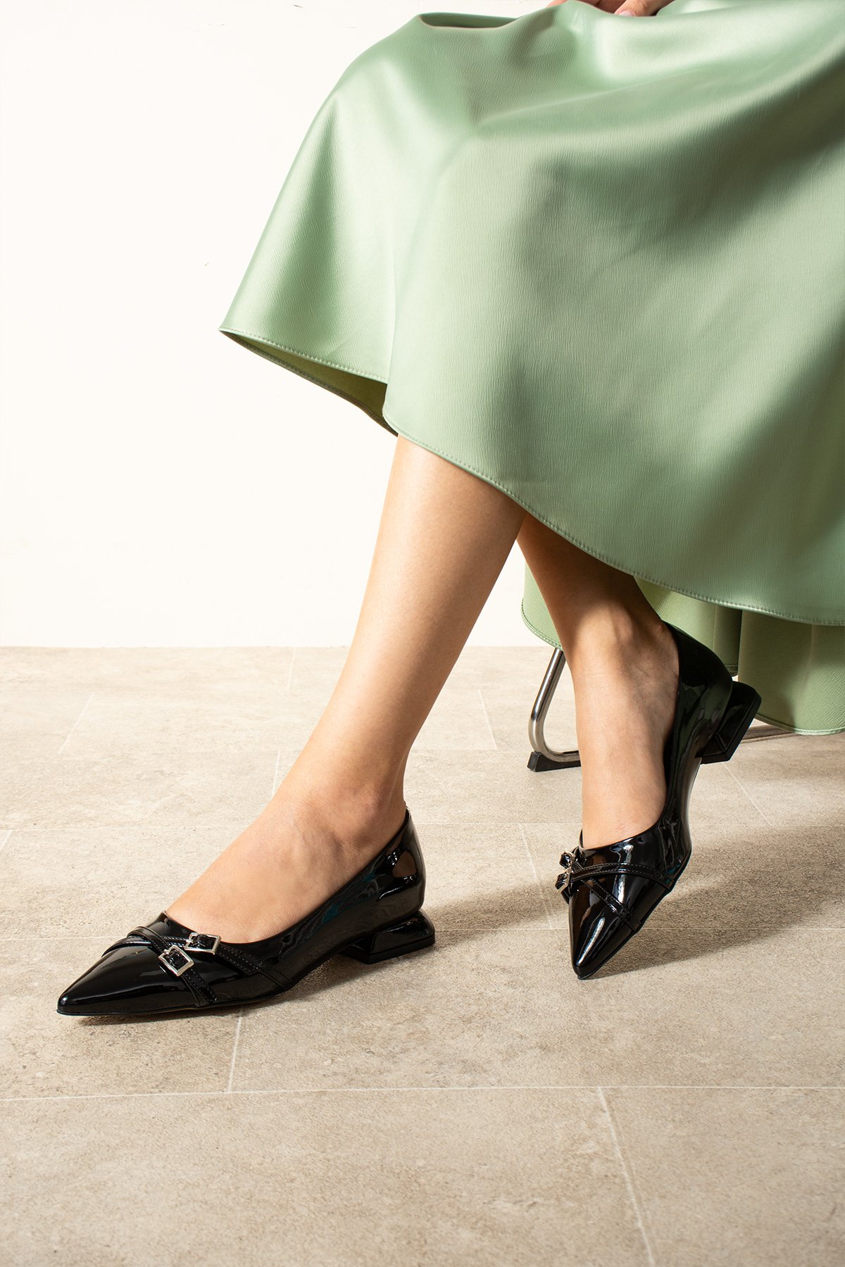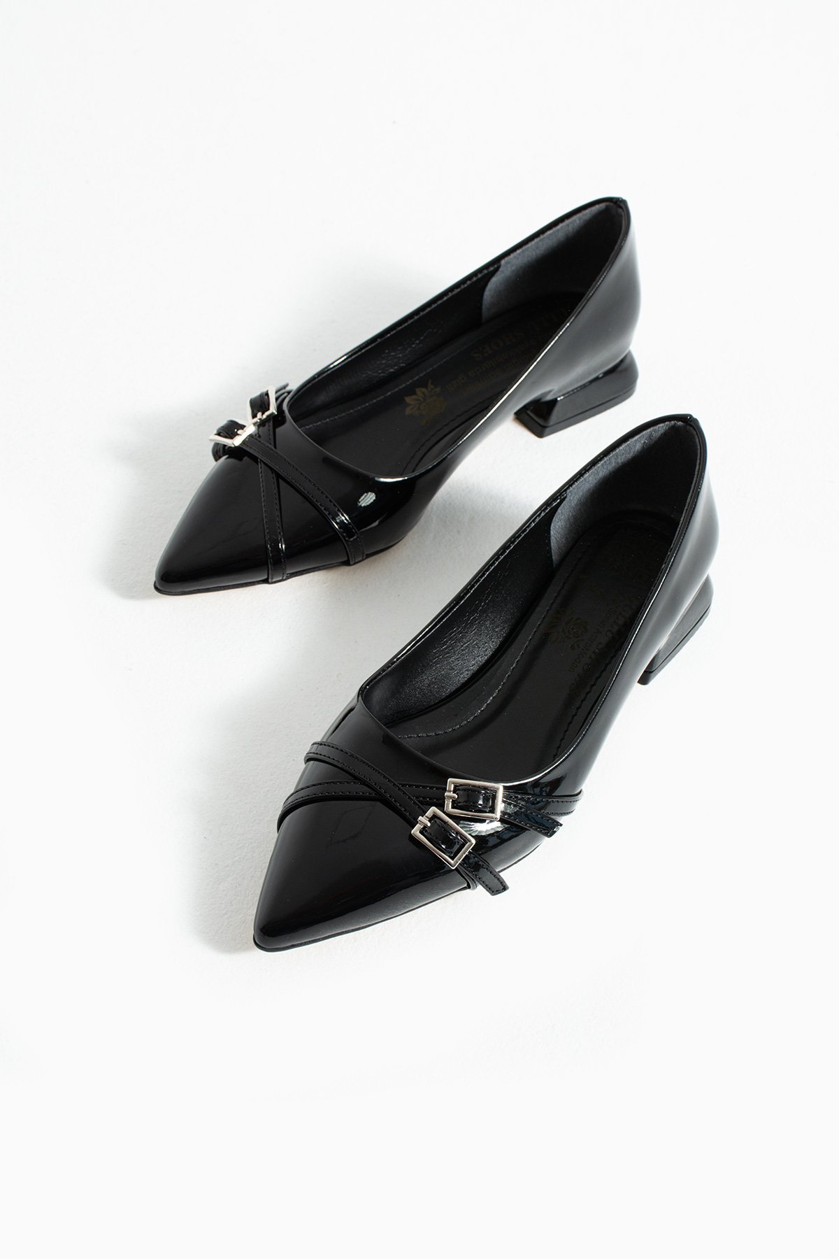 ✓ Burun & Tasarım: Sivri burun formu ve çift tokalı bant detayı; klasik babet şıklığını modern bir çizgiyle buluşturur.