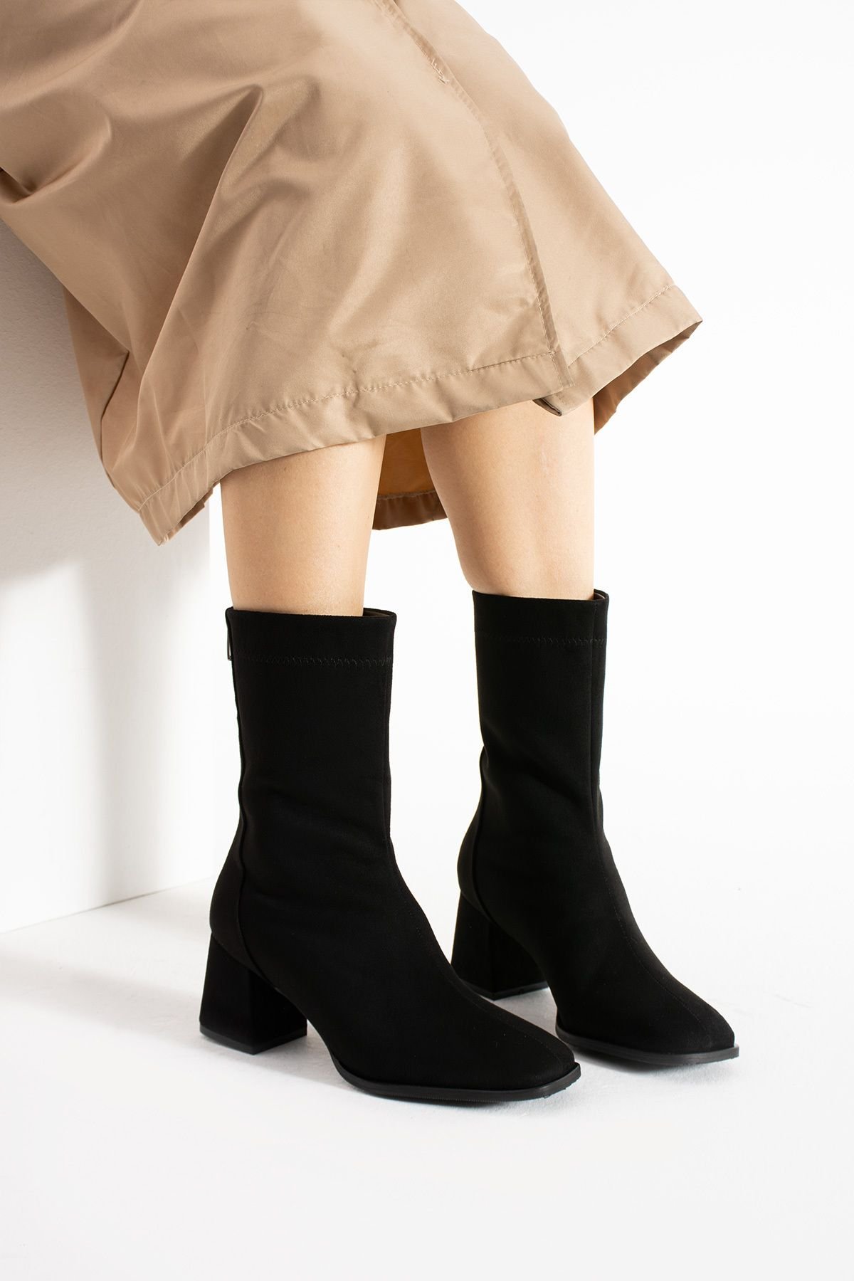 Midi boy bilek hizasında biten bu bot, hem tayt hem jean hem de elbiselerle mükemmel uyum sağlar.
