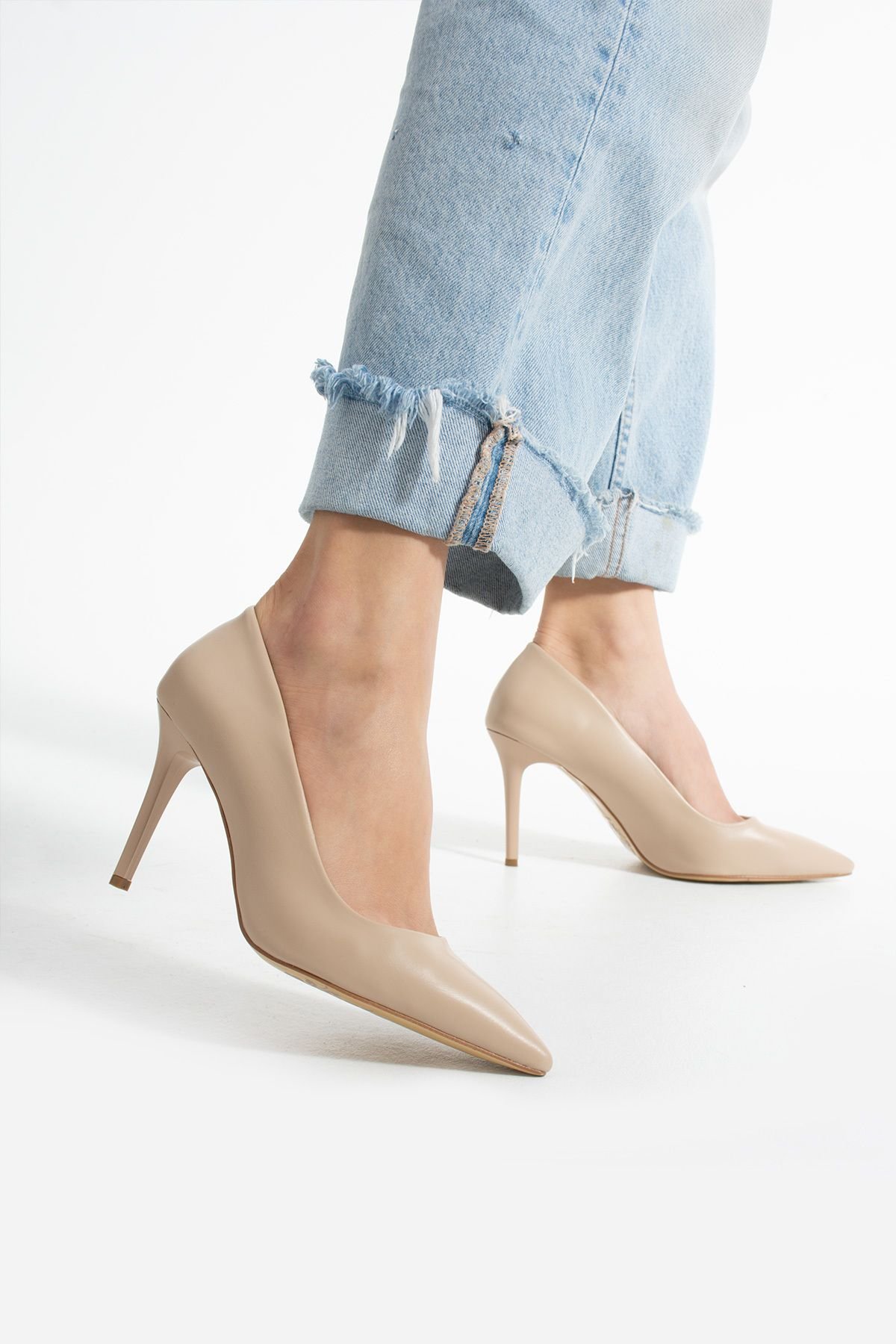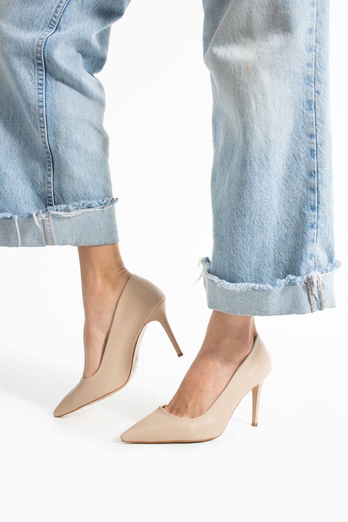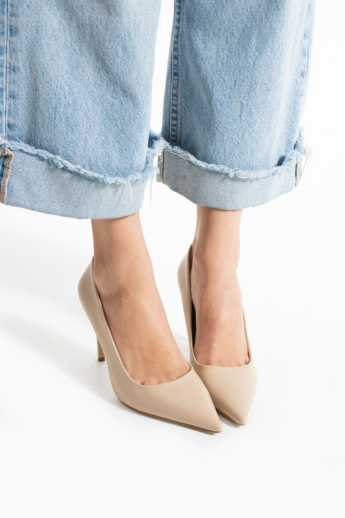 Güllü Shoes’un bej mat vegan deri stiletto modeli, sade şıklığın en zarif hâlini konforla birleştiriyor.