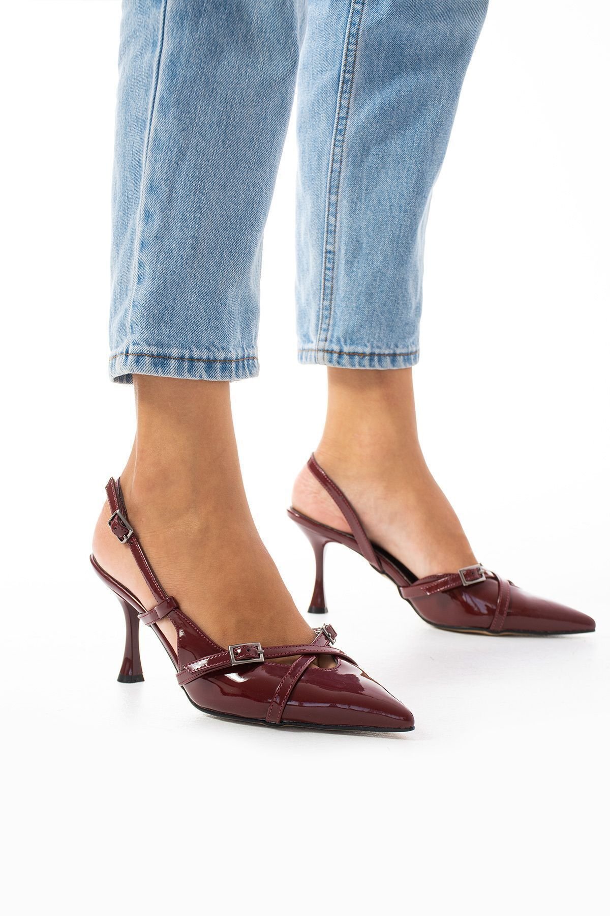 Kadın Topuklu Ayakkabı Abiye Ayakkabı Bordo Stiletto Vegan Deri Rugan – Günlük Ve Özel Gün