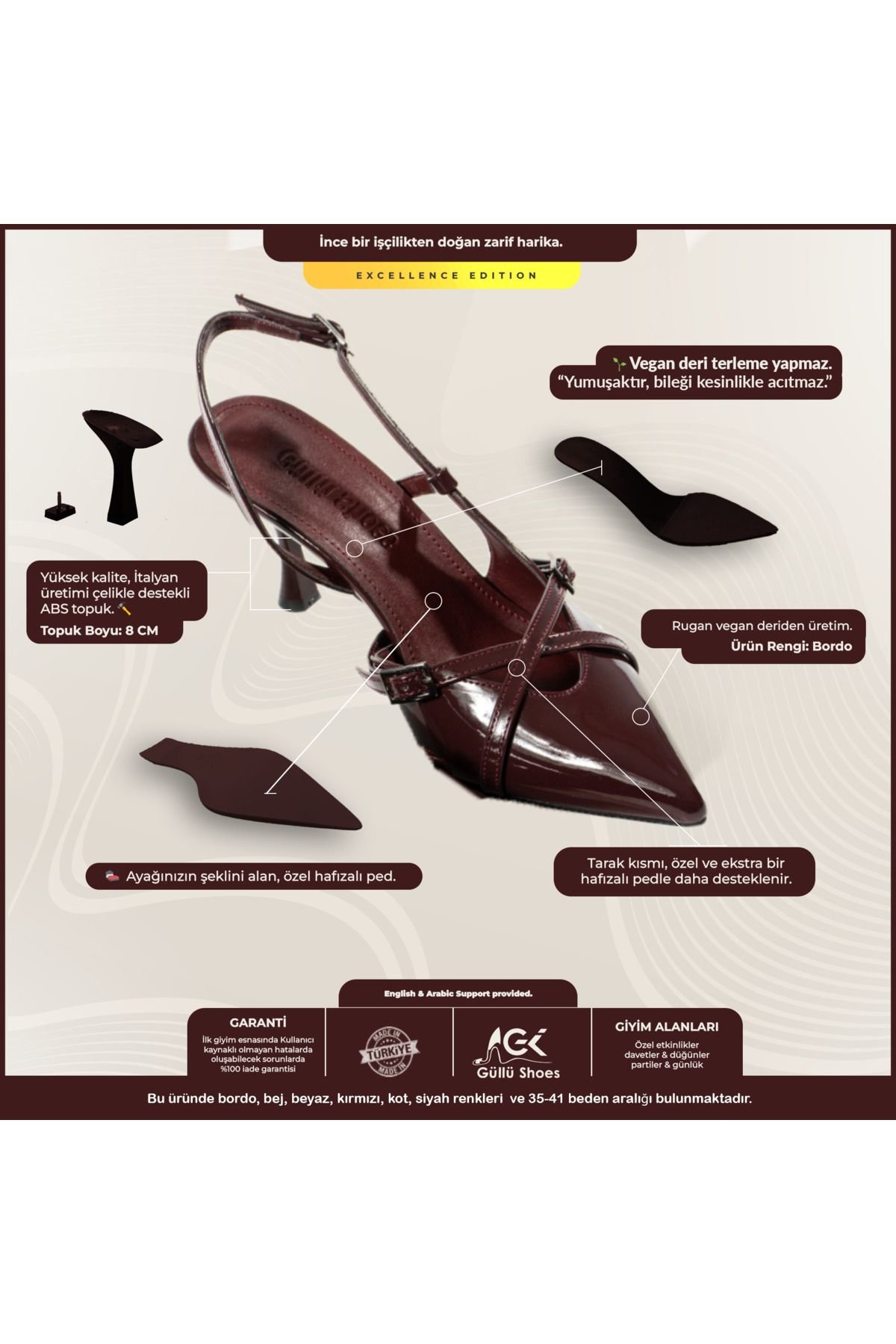 & Ücretsiz KargoStiletto Topuklu Ayakkabı: İnce ve uzun topuk yapısı, şıklığı ve zarafeti bir arada sunar.; Kadın Abiye Ayakkabı: Düğün, davet ve özel gecelerde şıklığınızı tamamlar.; Rugan Kaplama: Parlak ve lüks bir görünüm sağlar, hem abiye hem de günlük kombinler için mükemmel bir tercihtir.; Vegan Deri Ayakkabı: Çevreye duyarlı kadınlar için doğa dostu malzemelerden üretilmiştir.; Günlük Topuklu Ayakkabı: Rahat yapısı sayesinde gün boyu konfor sağlar, şıklığından ödün vermeden kullanabilirsiniz.; Düğün Ayakkabısı: Özel günlerinizde, zarif duruşu ve rahat yapısıyla size eşlik eder.; Bordo Kadın Stiletto: Her kıyafetle uyumlu, çok yönlü bir ayakkabı olarak gardırobunuzun vazgeçilmezi olur.; Topuk Yüksekliği: 8 cm.; Bordo stiletto, kadın modasında zamansız bir klasik olarak kabul edilen ve her kadının gardırobunda mutlaka bulunması gereken bir stiletto topuklu ayakkabı modelidir.; Bu bordo stiletto, zarif bir duruş sağlarken, ince topukları sayesinde kadınların ayaklarını daha uzun ve ince gösterir.; Kadın abiye ayakkabı kategorisinde, özellikle bordo stiletto modelleri, hem şıklığı hem de rahatlığı bir arada sunarak özel gecelerde, davetlerde ve düğünlerde kadınların ilk tercihi olmaktadır.; Abiye topuklu ayakkabı arayışında olanlar için ideal bir seçenek olan bu bordo kadın stiletto, kombinlerinizi tamamlayarak göz alıcı bir görünüm elde etmenizi sağlar.; Stiletto topuklu ayakkabı, özellikle abiye ve günlük kombinlerde sıkça tercih edilen bir modeldir.; Bordo kadın stiletto, rugan kaplaması ile dikkat çekerken, parlaklığı ve lüks görünümüyle abiye topuklu ayakkabı arayan kadınlar için vazgeçilmez bir alternatiftir.; Bordo topuklu ayakkabı, her türlü kıyafetle uyum sağlayan çok yönlü bir seçenek sunarken, vegan deri ayakkabı özelliği sayesinde çevreye duyarlı kadınların da tercihi olmaktadır.; Vegan deri ayakkabı arayanlar için özel olarak tasarlanmış bu bordo stiletto, zarafeti ve doğa dostu olmayı bir arada sunar.; Kadın stiletto denildiğinde akla ilk gelen bu model, düğün ayakkabısı olarak da mükemmel bir tercih sunar.; Düğün gibi özel günlerde, hem şıklığı hem de rahatlığı bir arada sunan bu abiye topuklu ayakkabı, gün boyu rahatlıkla kullanılabilecek bir tasarıma sahiptir.; Rugan ayakkabı kaplaması, bordo stilettoya ekstra bir parlaklık katarken, stiletto topuklu ayakkabı yapısı sayesinde zarif bir yürüyüş sağlar.; Bordo kadın stiletto, hem abiye hem de günlük topuklu ayakkabı olarak kullanılabilecek kadar çok yönlüdür.; Bu bordo topuklu ayakkabı, kadın abiye ayakkabı koleksiyonlarının vazgeçilmez bir parçası olarak, stil sahibi kadınların her zaman tercihi olmuştur.; Sonuç olarak, bordo sitiletto, kadın stiletto modelleri arasında öne çıkan, şıklığı ve zarafeti bir arada sunan, vegan deri ayakkabı olarak da tercih edilebilecek, rugan ayakkabı parlaklığıyla dikkat çeken, abiye topuklu ayakkabı arayanlar için mükemmel bir seçenek sunan, günlük topuklu ayakkabı olarak da kullanılabilen, düğün ayakkabısı olarak harika bir tercih olan, bordo kadın stiletto modelidir.; Bordo topuklu ayakkabı, kadın stiletto arayışında olanların mutlaka göz önünde bulundurması gereken bir modeldir ve bu sitiletto topuklu ayakkabı, her kadının tarzını yansıtan, abiye ve günlük kombinlerde mükemmel uyumu sağlayan bir üründür.
