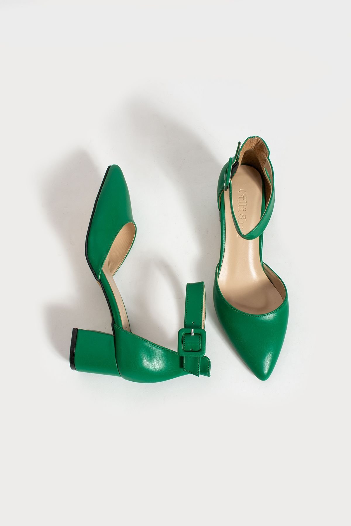 Yeni sezonun en çok tercih edilen klasik topuklu modellerinden biri olan bu yeşil stiletto, hem abiye kombinlerde hem de gelinlik altında tercih edilebilecek zarif bir alternatiftir.