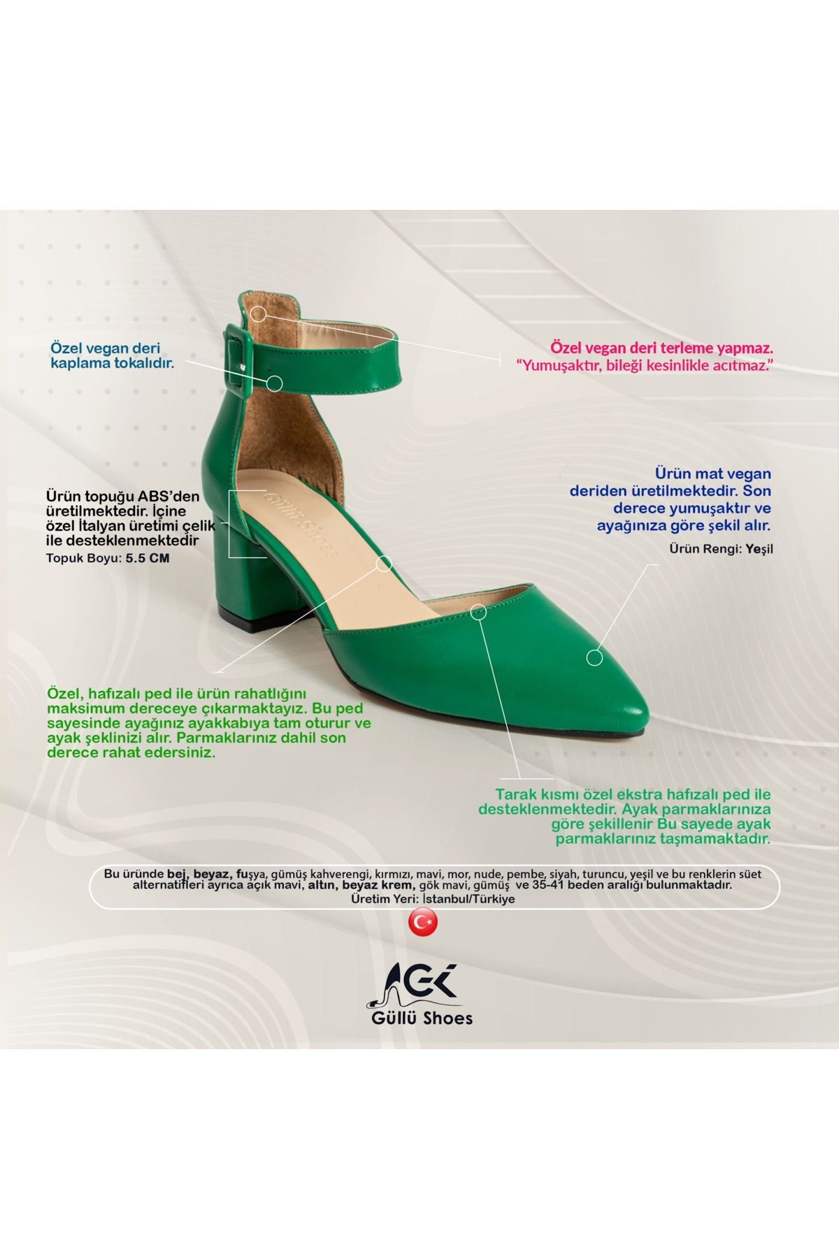 Yeşil Topuklu Abiye Kadın Ayakkabı – 5.5 cm Kalın Topuklu, Şık ve Zarif Stiletto Model, Gelinlik & Özel Gün Kombinlerine Uygun