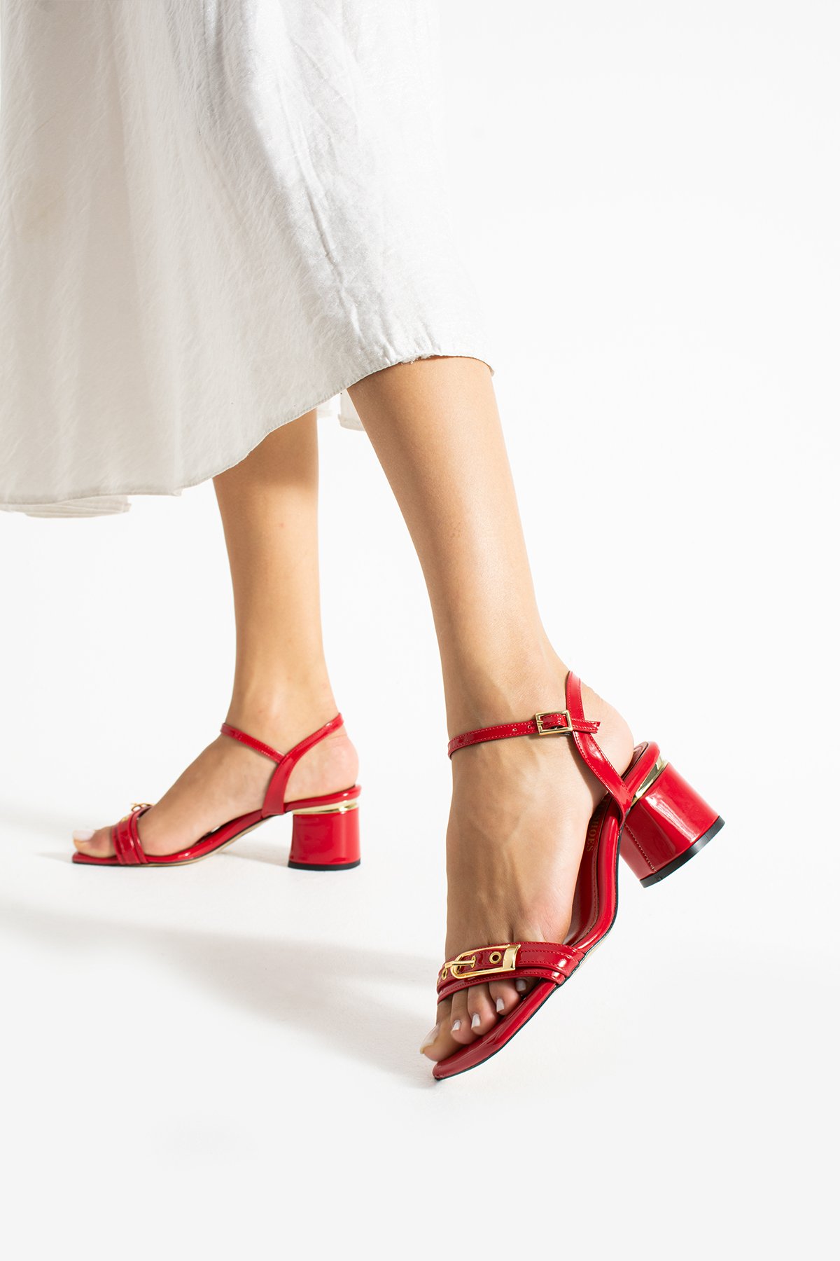 “Kırmızı rugan sandalet”, “kalın topuklu kırmızı ayakkabı” arayanlar için ideal