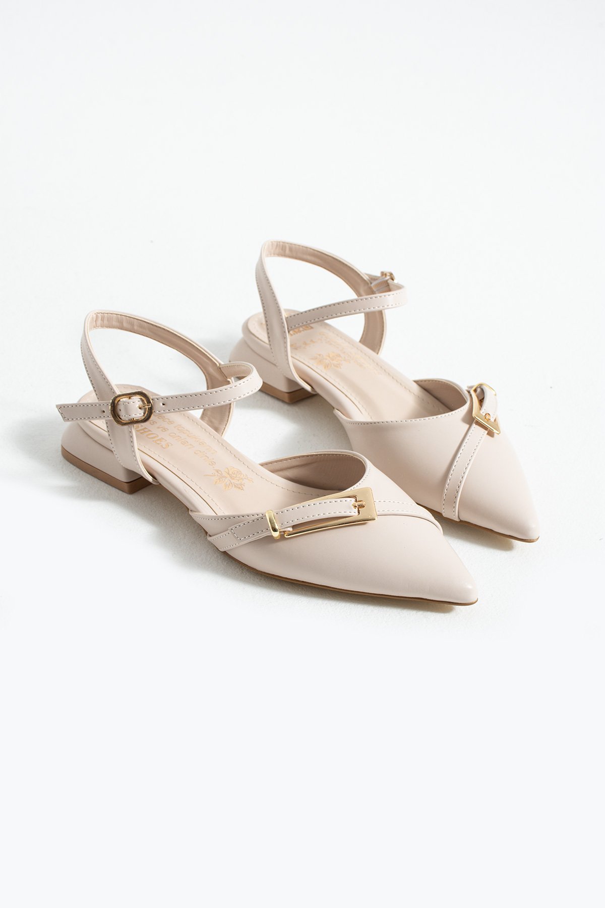 ✓ Burun & Tasarım: Sivri burun formu; altın tokalı bant ve bilekten bağlamalı kayış detayıyla klasik şıklığı modern çizgiyle buluşturur.