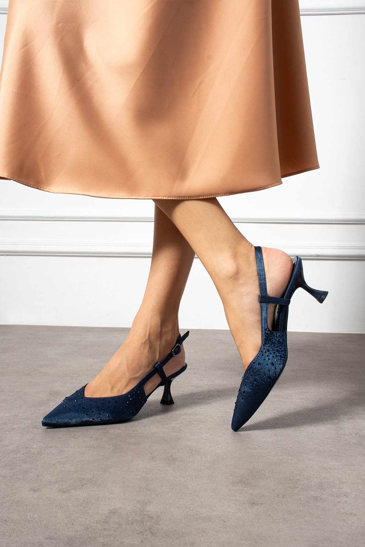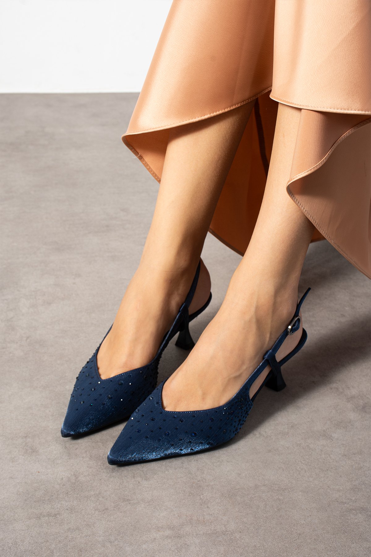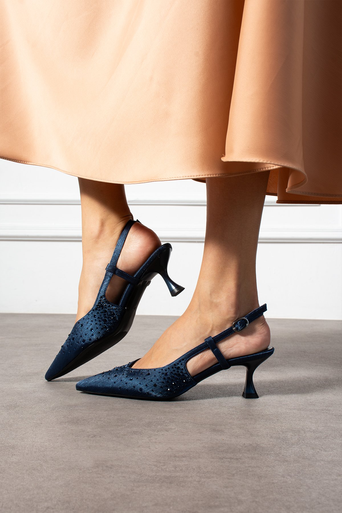 “Lacivert taşlı stiletto”, “slingback topuklu ayakkabı” arayanlar için ideal