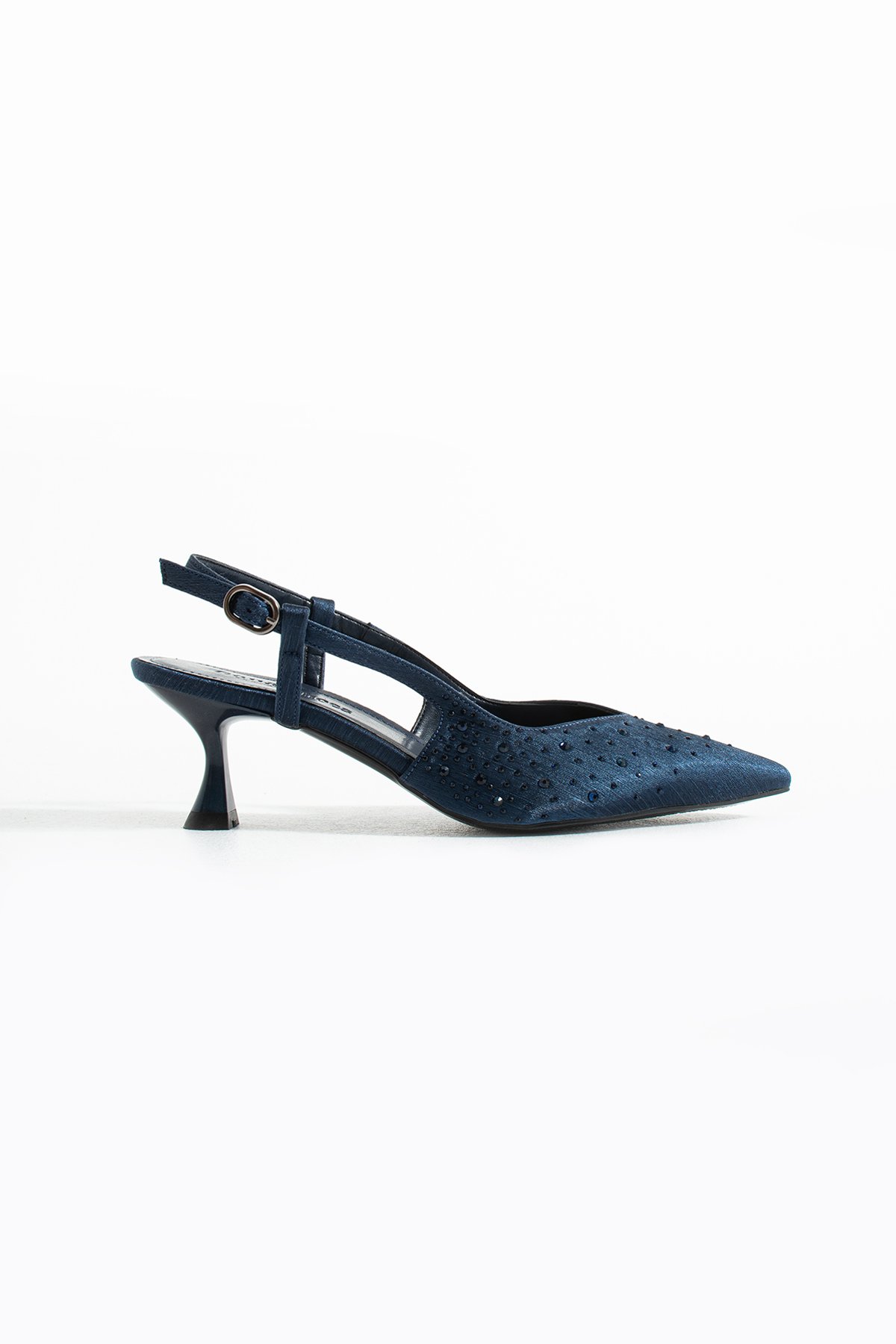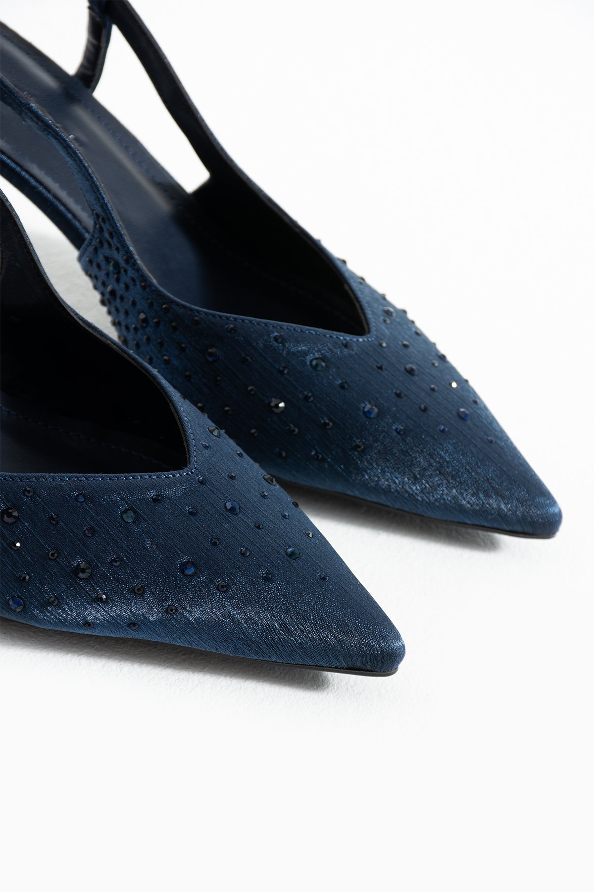 Lacivert Taş Detaylı İnce Topuklu Slingback Stiletto – Şık ve Zarif Abiye Kadın Ayakkabı