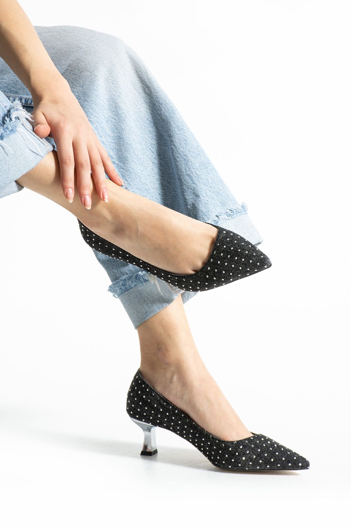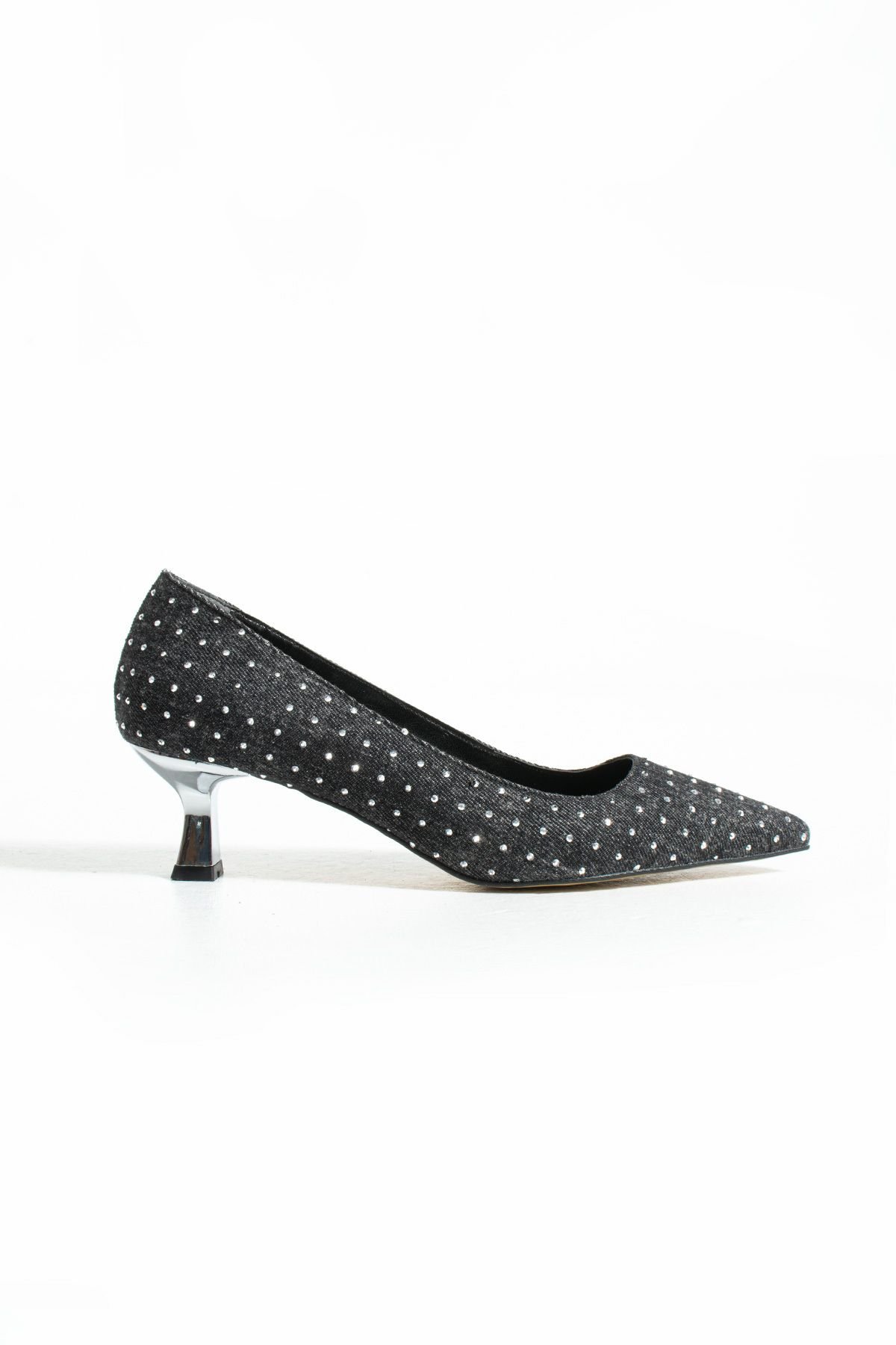 & Ücretsiz KargoSiyah kot taşlı topuklu ayakkabı, özel dokulu tasarımı ve ince topuk yapısıyla klasik stile modern bir yorum katıyor.