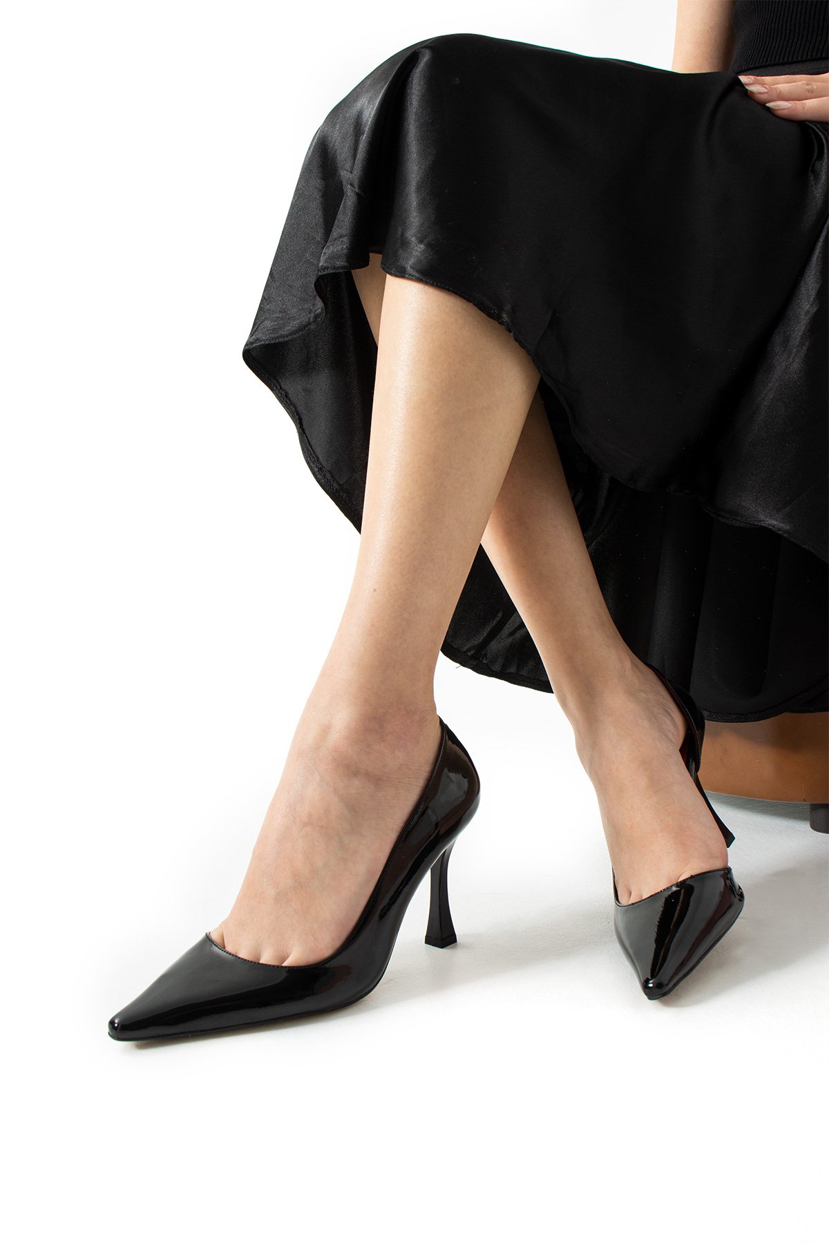 Siyah Rugan Sivri Burun İnce Topuklu Stiletto Ayakkabı – Şık, Zarif ve Göz Alıcı Stil