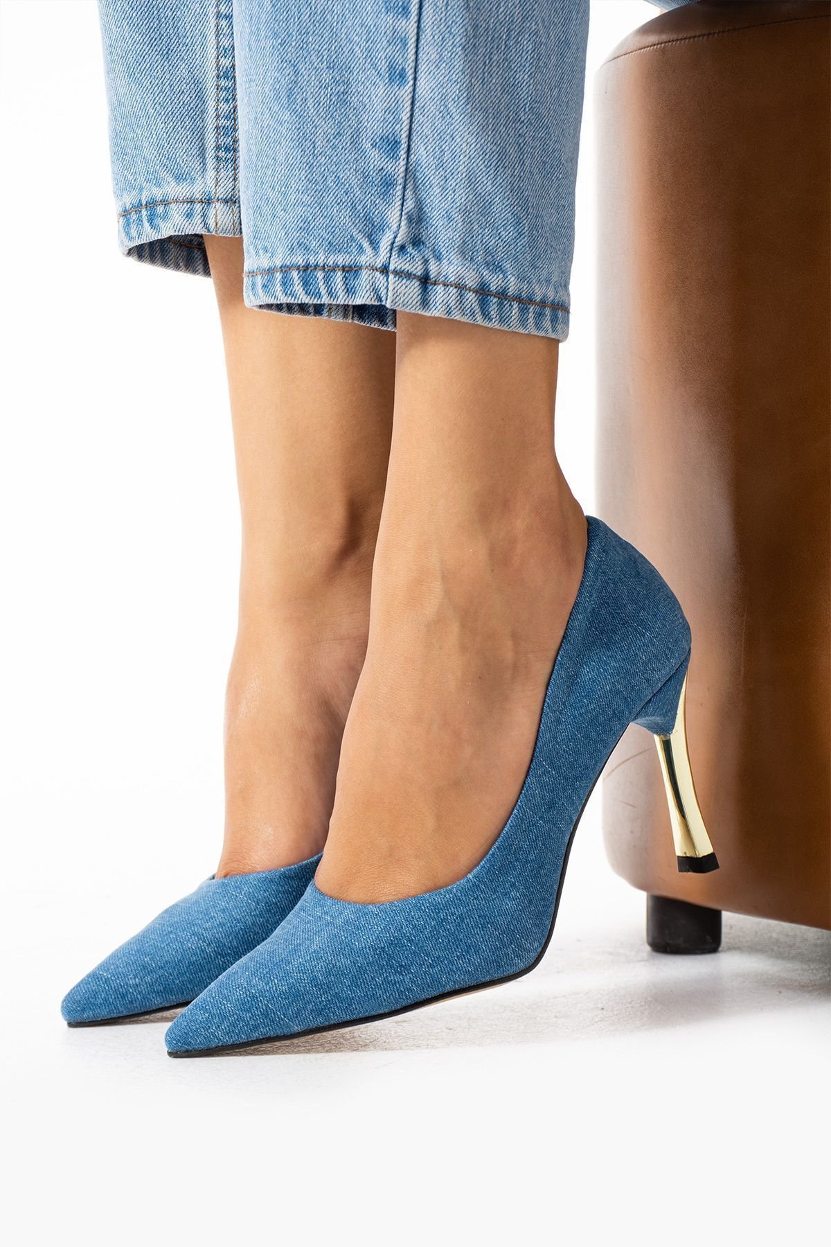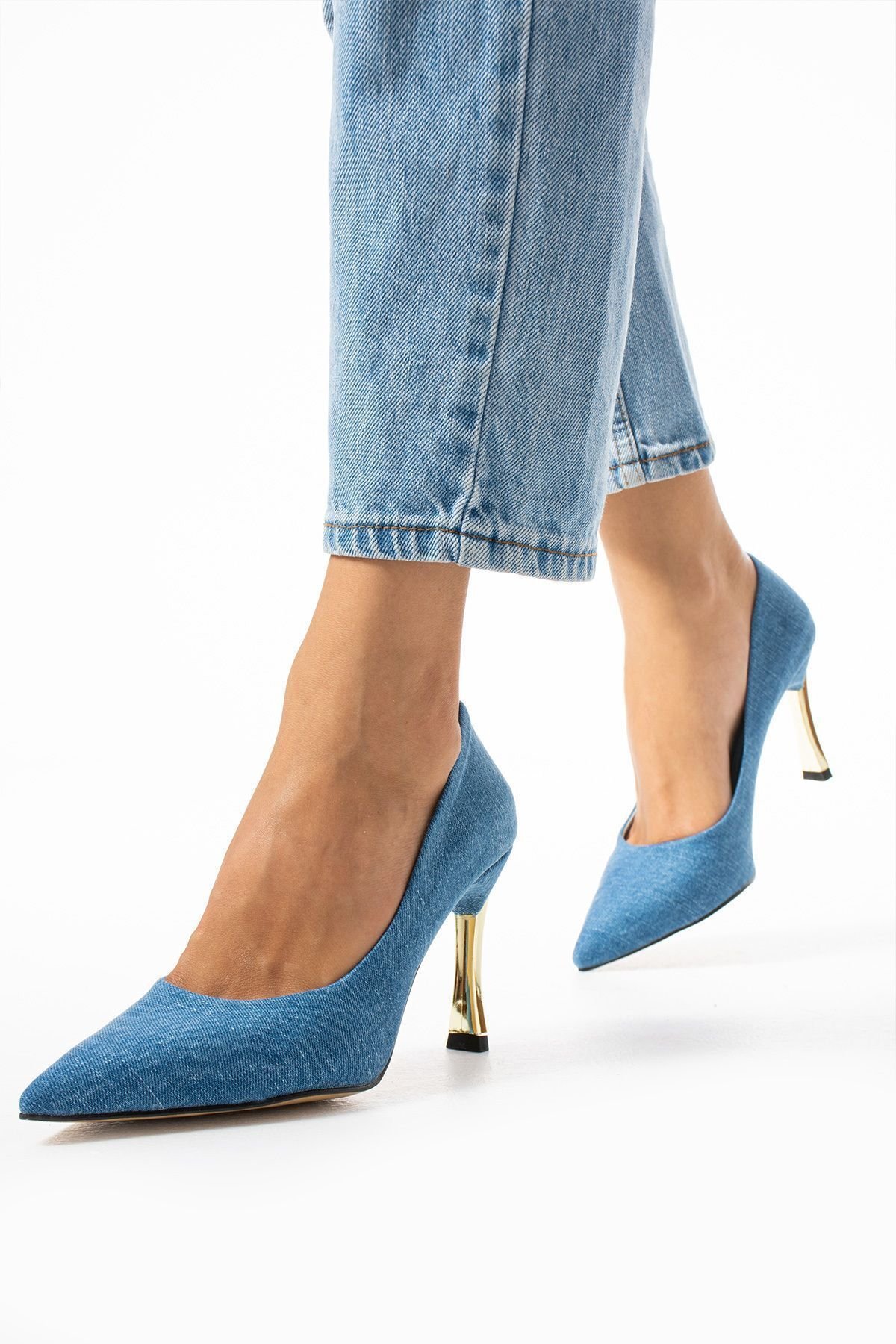 Stiletto Kot Jeans Kadın Topuklu Ayakkabı Konforlu Vegan Deri Günlük Ve Özel Gün